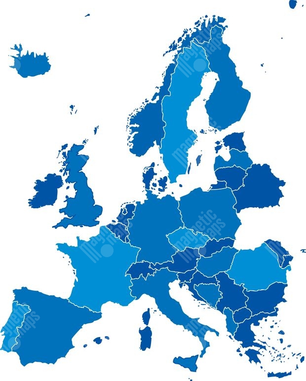 Magnetic map of Europe, illustrated, blue