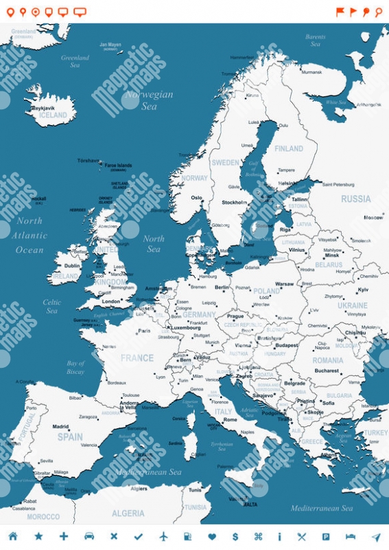 Magnetic map of Europe, illustrated, white-blue